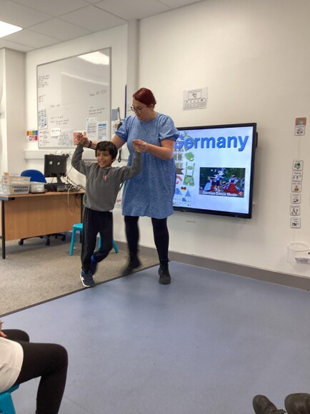 Blue Class at Harry Watts Academy had a fantastic time celebrating World Language Day with a range of exciting activities that brought global cultures to life. The pupils explored countries including Spain, Italy, Germany, France, and Greece, learning how to say "hello" in each language and sampling traditional foods such as chorizo, pretzels, French baguettes, and Greek yogurt.